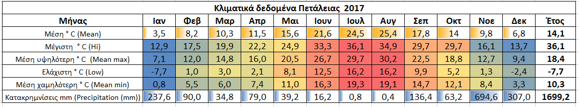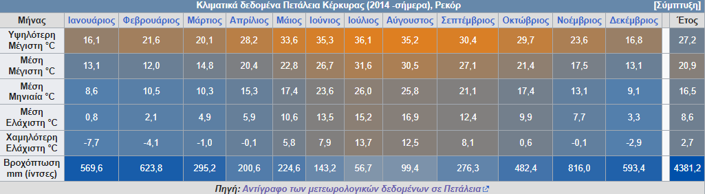 Κλιματολογικά στοιχεία του Μ/Σ Πετάλεια Κέρκυρας